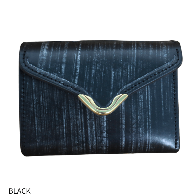 アイコニックな真鍮金具がデザインアクセントのコンパクトウォレット。