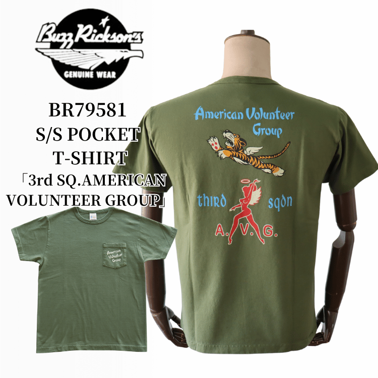 BUZZ RICKSON'S バズリクソンズ BR79581 S/S POCKET T-SHIRT ポケットTシャツ3rd SQ.AMERICAN VOLUNTEER GROUP」フライングタイガース