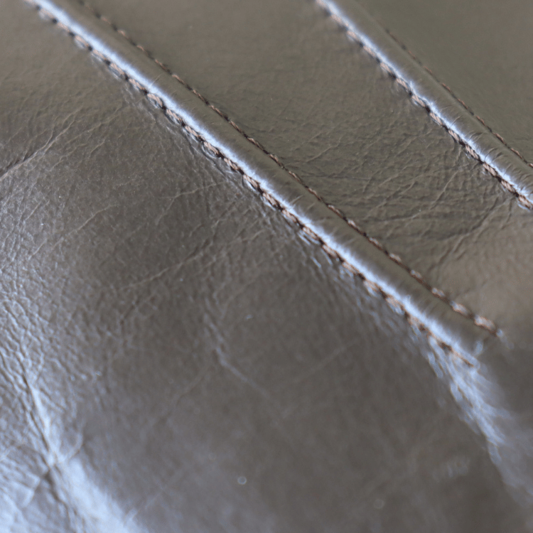 手の甲に施された3本のステッチは革の伸びを抑え、
