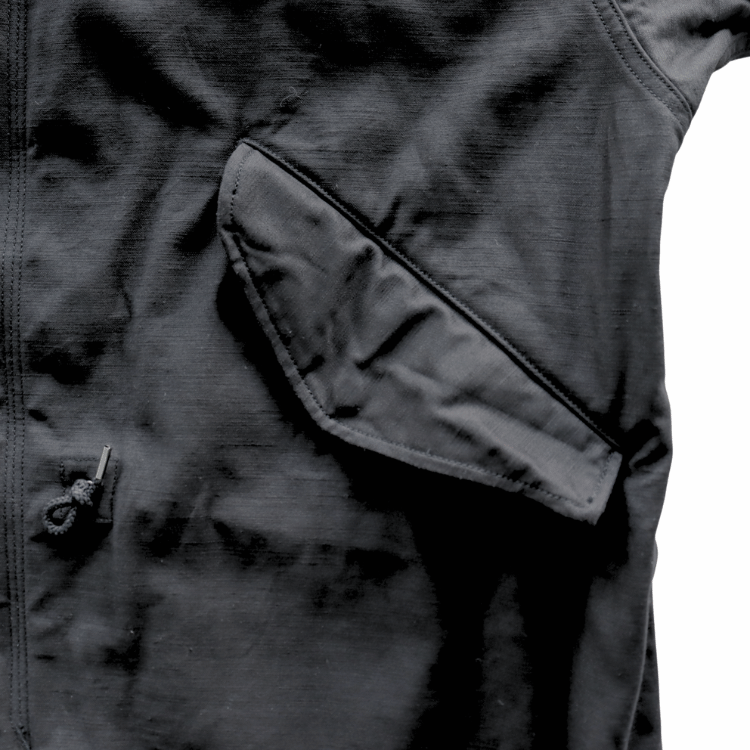 厚手のコットンサテン生地を裏使いしたM-51パーカー。