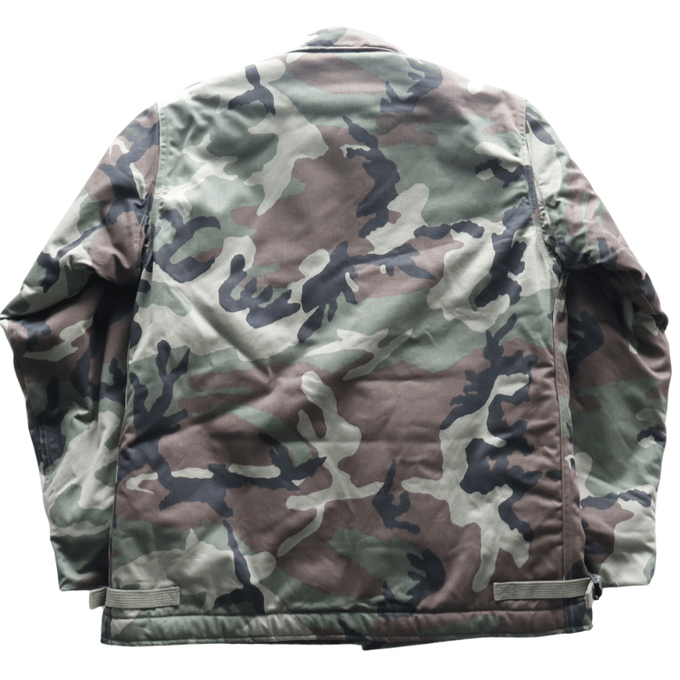 ウッドランドのカモフラージュ生地を使用したデッキA-2は1980年代に生産され、年代こそ古くは無いものの、生産数が希少のため古着市場において高値で取引される。