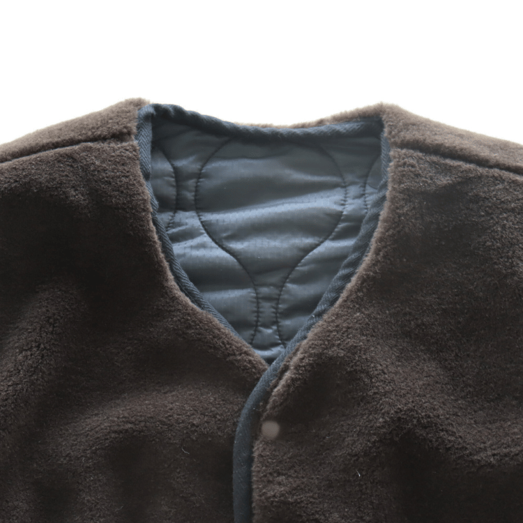 オニオンキルトのミリタリーライナーをモチーフにしたベストを久しぶりにリリースです。