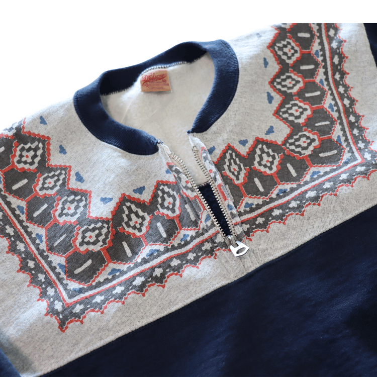 DELUXEWARE デラックスウエア S105-24A SNOW HALF ZIP 希少なヴィンテージ雪柄を採用したハーフジップスウェット