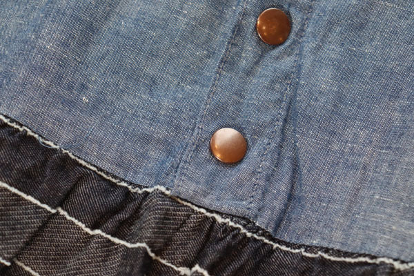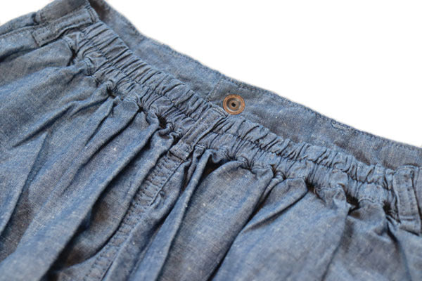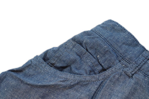 フロントはスナップボタン式でウエストの後ろ部分のみゴムになったつくりなので見栄えも良く、