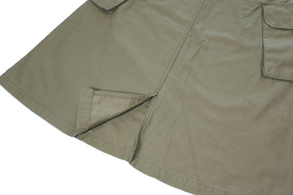 無骨なミリタリーディテールですが、スカートにする事によってレディライクな着こなしに