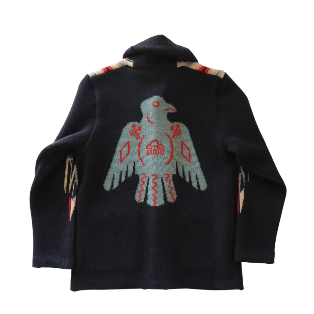 後ろ身頃では大柄のサンダーバードが大胆に表現されており、
