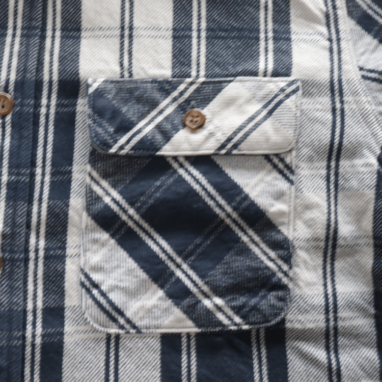 旧力織機で織り上げた別注ネル生地を使用。