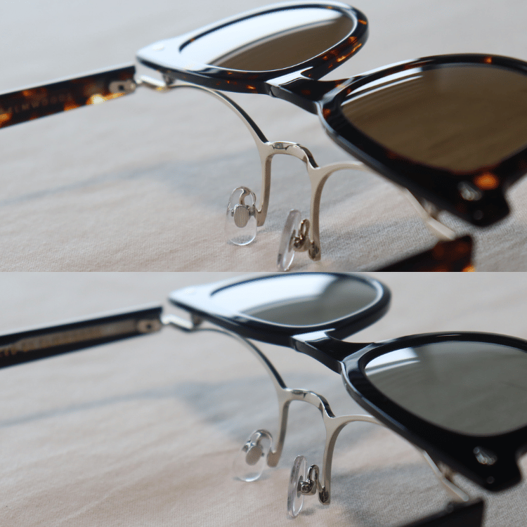 レンズをリム(フレーム)ごと上向きに上がる単式で、