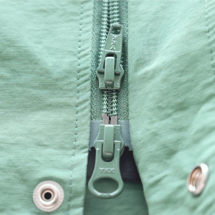 フロントはスナップボタンとファスナーの二重構造になっています。