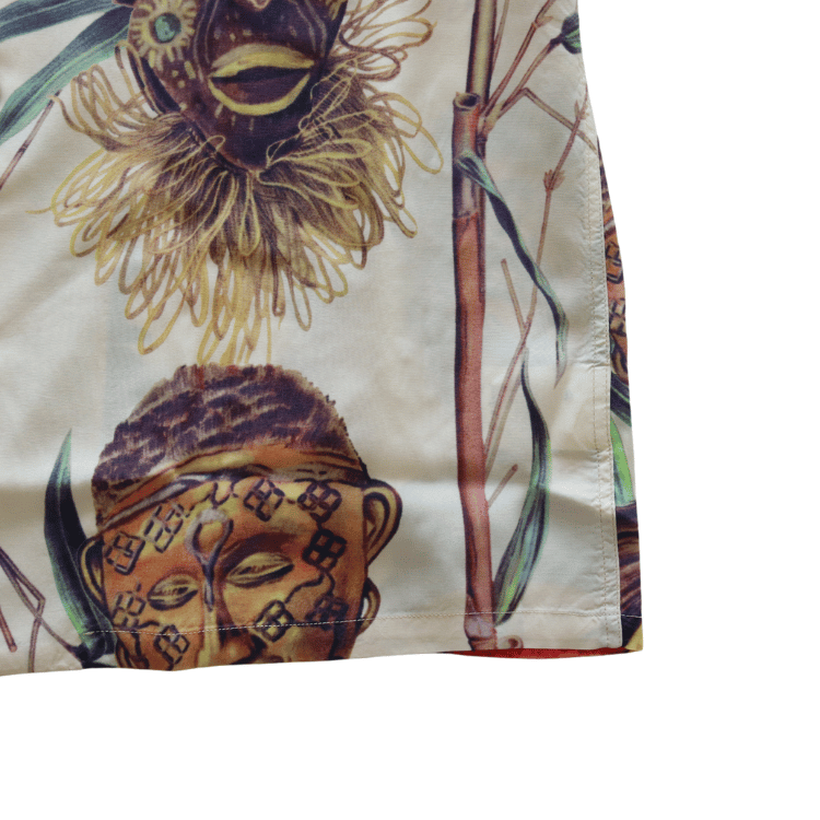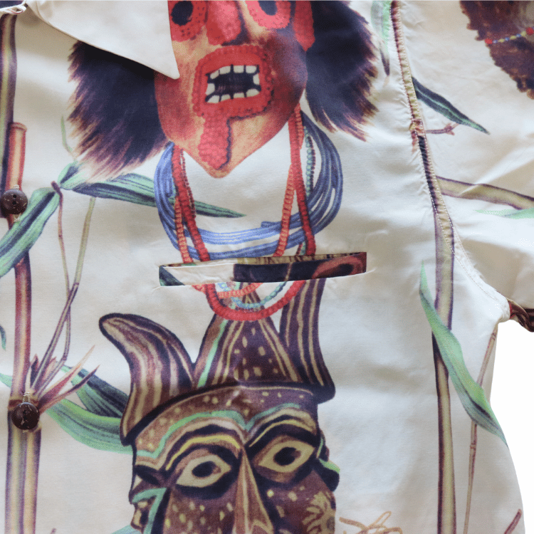 1970年代に京都からアメリカ本土に渡ったこの生地は、主にスカーフとして製品化され、アロハシャツとしては極めて少数しか製作されていない。