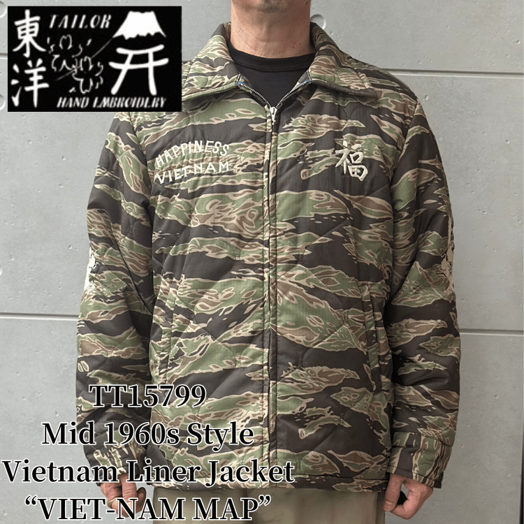 TAILOR TOYO テーラー東洋 TT15799 Mid 1960s Style Vietnam Liner Jacket “VIET-NAM MAP” ベトナムライナージャケット ベトナムマップ ベトジャン ベトナム戦争 カスタムオーダー品 マップ柄 瓢箪型のキルティング ナイロンリップストップ 防寒性 タイガーストライプ