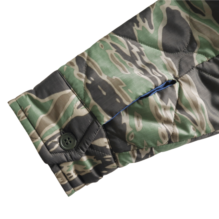 通常、ライナー生地はウッドランド迷彩だが、本作はタイガーストライプを落とし込んだオリジナルモデル。