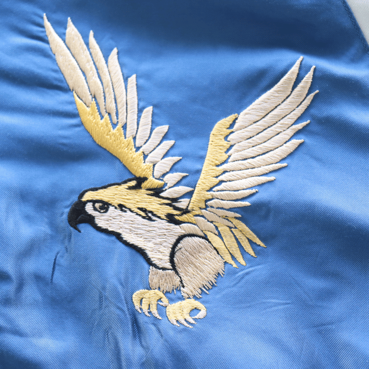 数あるジャパンマップ柄のなかでも特に秀逸で豪華な刺繍と言えるだろう。