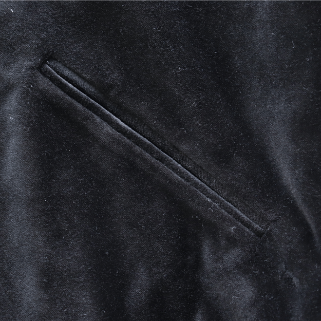 別珍×サテンのリバーシブルだがキルティングステッチが入らないレアなディテールを再現している。