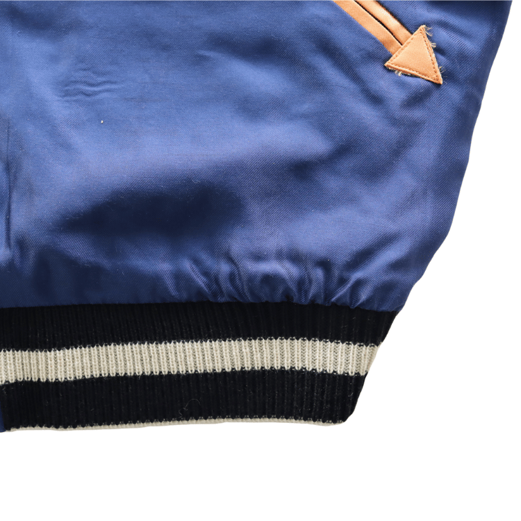 戦後当時のスカジャンには、シルクに似た高級感を持つ物資統制外品目のアセテートが使われていた。