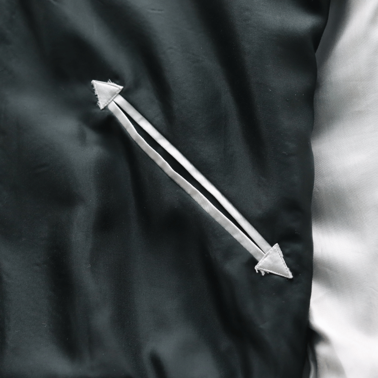 スーベニアジャケットのなかで最もスタンダードな両面にアセテート生地を使ったリバーシブルタイプ。