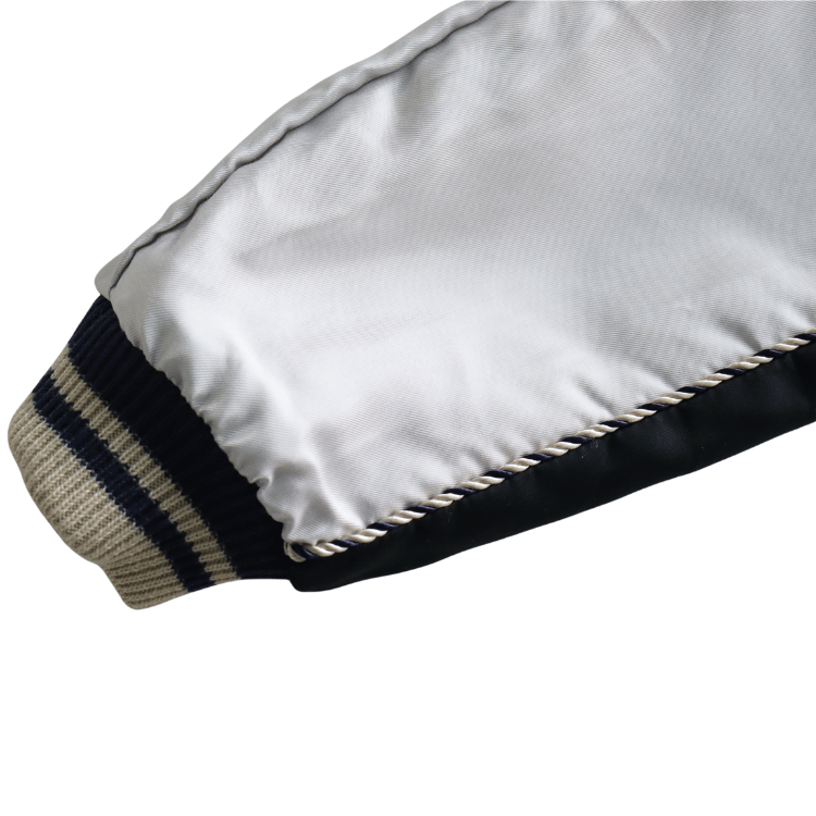 戦後当時のスカジャンには、シルクに似た高級感を持つ物資統制外品目のアセテートが使われていた。