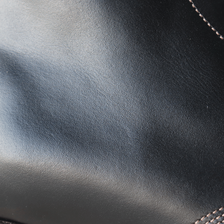 レザーは柔らかに足に馴染むフレンチカーフ。ブラックに丘染めされた革で、