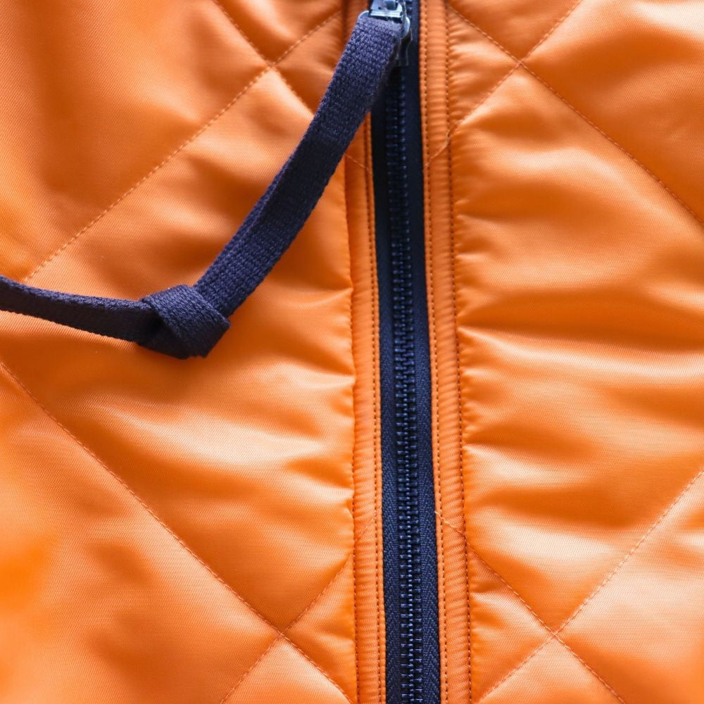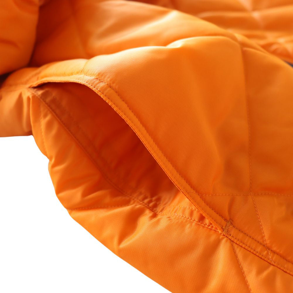 表地に2/2ナイロンツイル、裏地にナイロンリップストップを使用しており、両面で異なるキルティングを施した遊び心ある一着。