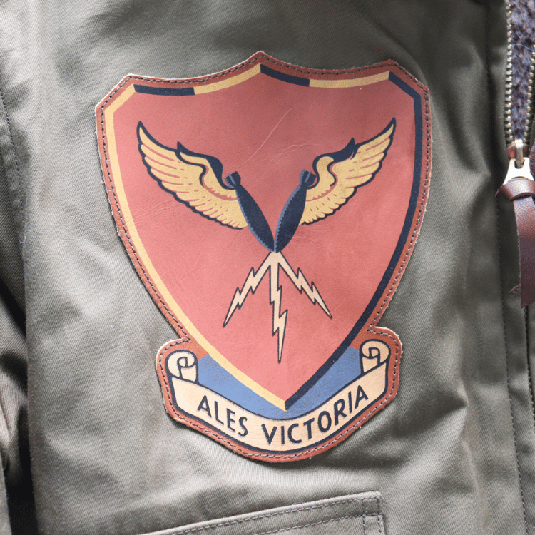左肩に8th AFのレザークラフトパッチが施されています。