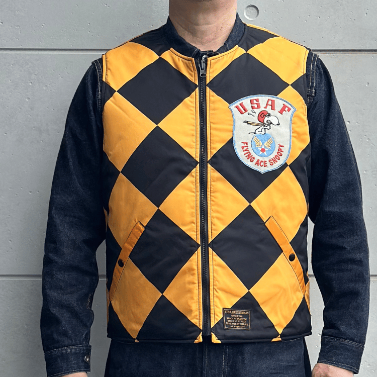 そんな使い勝手の良いベストに“FLYING ACE”スヌーピーの刺繍パッチをプラスした。