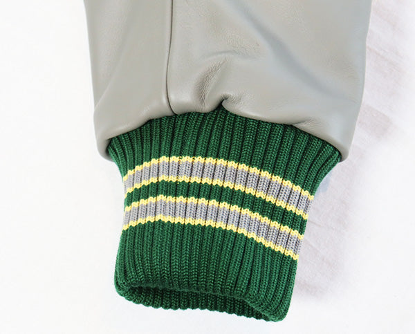 ホワイツビルのアワードジャケットは身頃に防寒性の高い30オンスのウールメルトン、袖には魅力的な経年変化をみせる米国産のステアハイドを使用。
